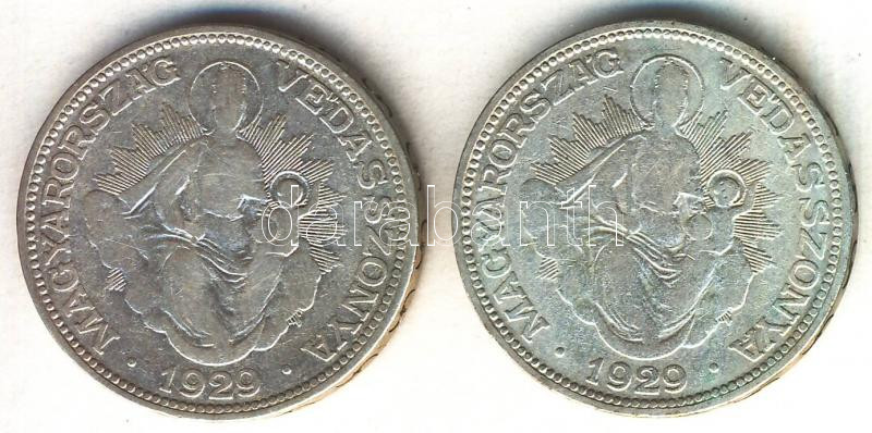 1929. 2P Ag "Madonna" (2x) T:3 https://www.darabanth.com/hu/170-Gyorsarveres/170.0/Numizmatika/Magyar-fem-es-ezustpenzek~500127/1929-2P-Ag-Madonna-2x-T3~II572412