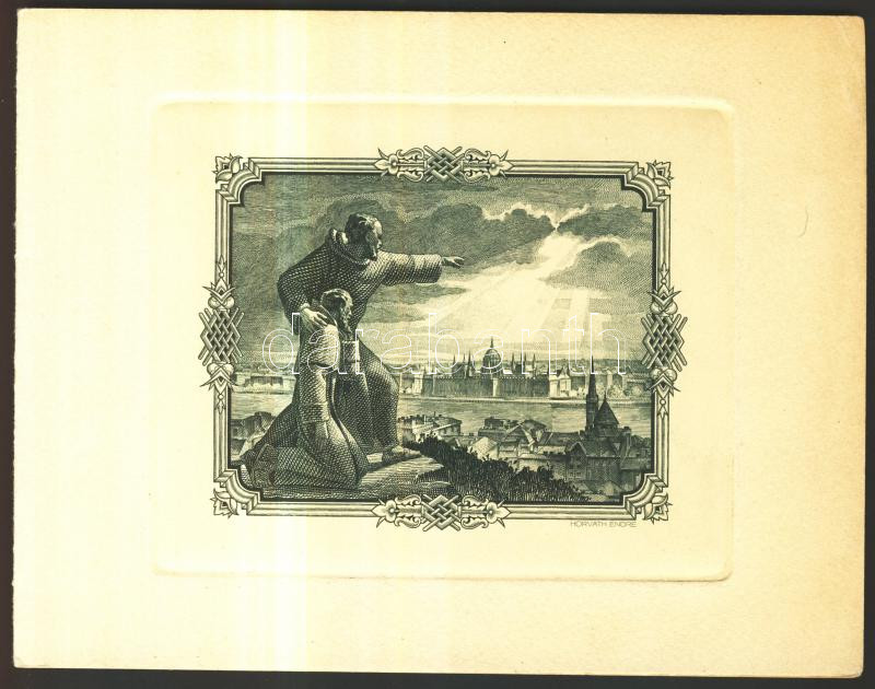 Leírás: Horváth Endre (1896-1954) Szent Gellért megvalósulatlan bankjegy tervezetének rézmetszete
