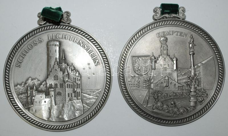 2db falra akasztható ón plakett: Schloss Lichtenstein és Kempten /