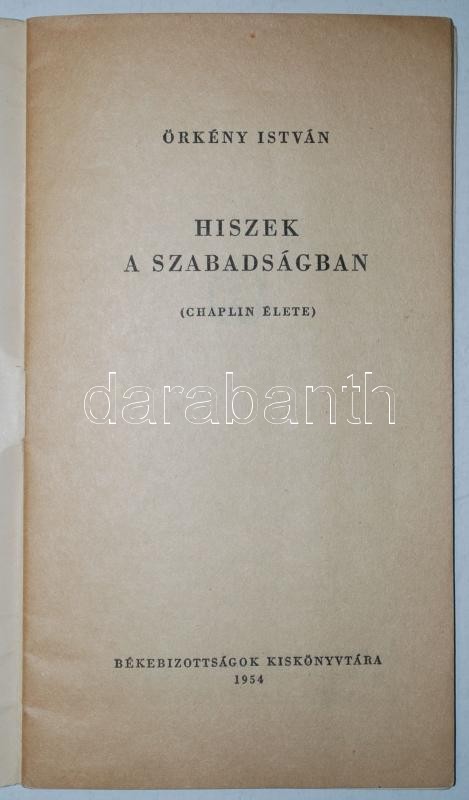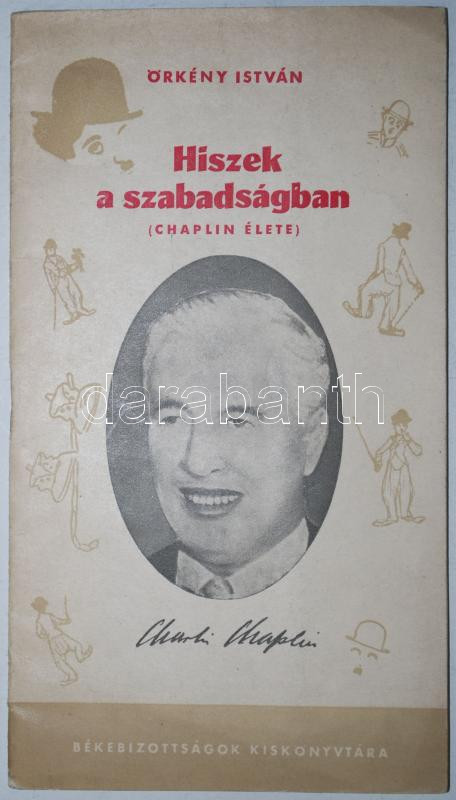 Örkény István: Hiszek a szabadságban. Chaplin élete. Békebizottságok K... https://www.darabanth.com/hu/171-Gyorsarveres/171.0/Festmeny-mutargy-papirregiseg-egyeb/Konyvek-Egyeb-ritkasagok~1000029/Orkeny-Istvan-Hiszek-a-szabadsagban-Chaplin-elete-Bekebizottsagok-Kiskonyvtara-1954~II579811