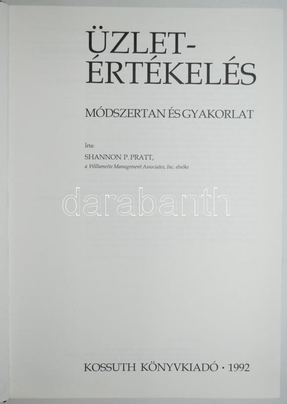 Leírás: Shannon Pratt: Üzletértékelés. Módszertan és gyakorlat. Bp., 1992, Kossuth