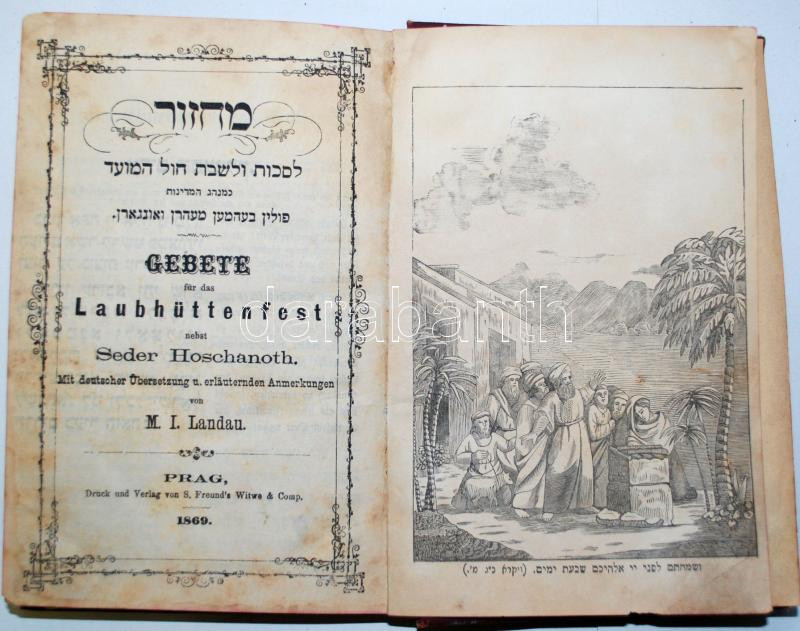 Gebete für das Laubhüttenfest nebst Seder Hoschanoth. Mit deutscher Übersetzung u. erläuternden Anmerkungen v. M. I. Landau. Prag, 1869, S. Freund's Witwe. Egészvászon kötésben, a címoldalon fametszettel /