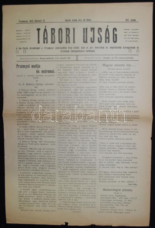 1915 A Przemysl-ben kiadott Tábori újság száma https://www.darabanth.com/hu/171-Gyorsarveres/171.0/Festmeny-mutargy-papirregiseg-egyeb/Militaria~1000002/1915-A-Przemysl-ben-kiadott-Tabori-ujsag-szama~II573364