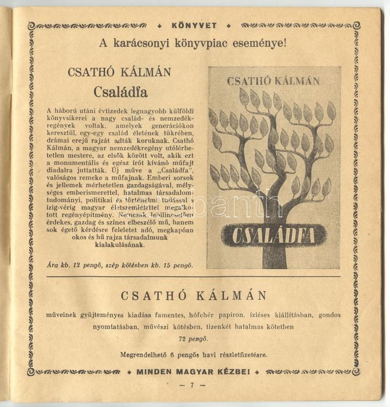 1942 Könyvet minden magyar kézbe. Magyar könyvszemle karácsonyi kiadvá... https://www.darabanth.com/hu/171-Gyorsarveres/171.0/Festmeny-mutargy-papirregiseg-egyeb/Nyomtatvanyok~1000005/1942-Konyvet-minden-magyar-kezbe-Magyar-konyvszemle-karacsonyi-kiadvanya-72p~II577173