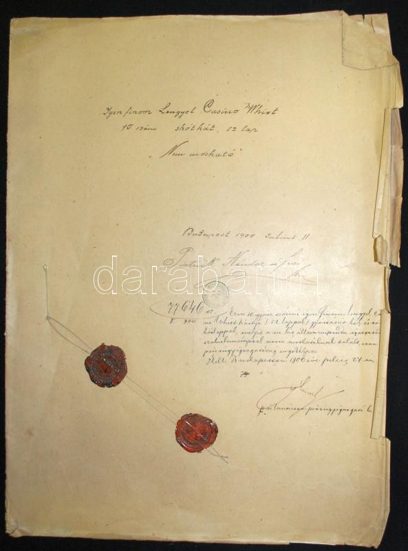 1900 Pénzügyigazgatóság gyártási engedély és mellékelt kártya és csoma... https://www.darabanth.com/hu/171-Gyorsarveres/171.0/Festmeny-mutargy-papirregiseg-egyeb/Okmanyok~1000028/1900-Penzugyigazgatosag-gyartasi-engedely-es-mellekelt-kartya-es-csomagolas-minta-casino~II577715