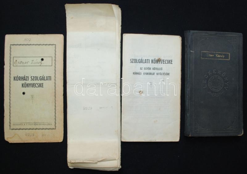 1926 Orvostanhallgató és medikus okmányai: egyetemi leckekönyv számos neves orvos aláÃrásával (Lenhossék, Rybár, Lehoczky-Semmelweis), szigorlati bizonyÃtványok + kórházi szolgálati könyvecske