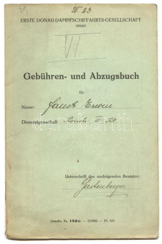 1932 DDSG - Dunagőzhajózási rt. díjkönyv / DDSG fee-booklet https://www.darabanth.com/hu/171-Gyorsarveres/171.0/Festmeny-mutargy-papirregiseg-egyeb/Okmanyok~1000028/1932-DDSG--Dunagozhajozasi-rt-dijkonyv-DDSG-fee-booklet~II578690