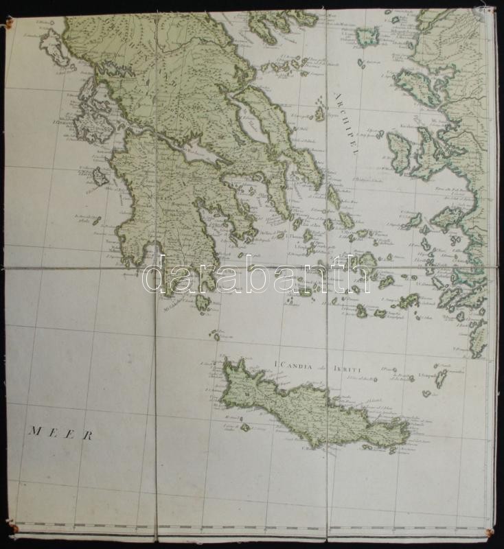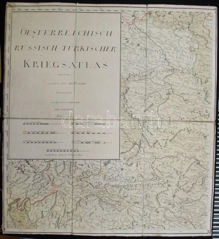 F. A. Schraembl: Oestterreichisch-russisch-türkischer Kriegsatlas entworfen von Herrn Abbé Max Schimek. 1788. 12 részből álló Európa-térkép jó állapotban. Az eredeti téka szakadt. / Map of Europe made of 12 pieces in good condition. Original cartboard case is damaged. 192x162 cm