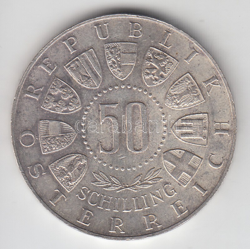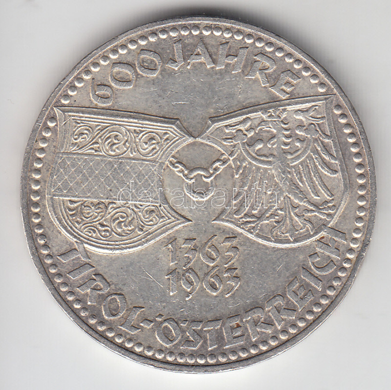 Austria 1963. 50 Schilling Ag "600th Anniversary-Union with Tirol" C:XF edge error