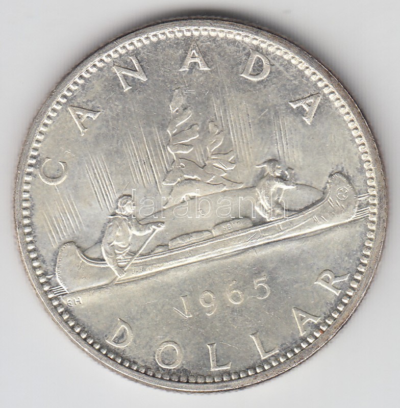 Canada 1965. 1 Dollar Ag "Canoe" C:XF https://www.darabanth.com/hu/171-Gyorsarveres/171.0/Numizmatika/Kulfoldi-fem-es-ezustpenzek~1000139/Kanada-1965-1USD-Ag-Kenu-T2-3Cbr3ECanada-1965-1-Dollar-Ag-Canoe-CXF~II576577
