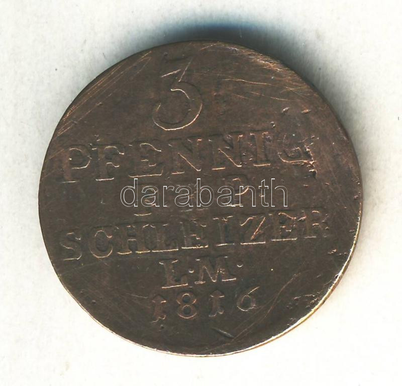 German States / Reuss-Schleiz 1816. 3 Pfennig C:F,VG