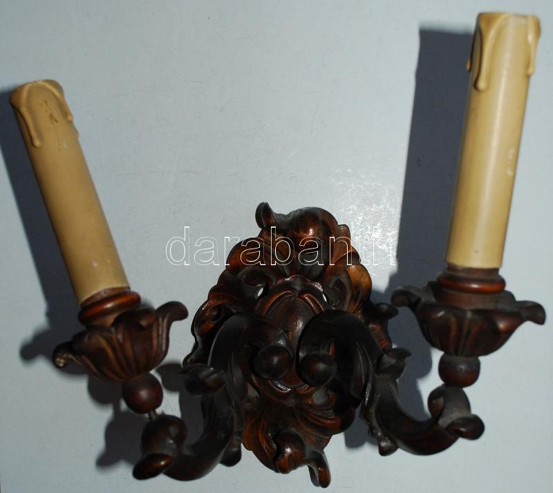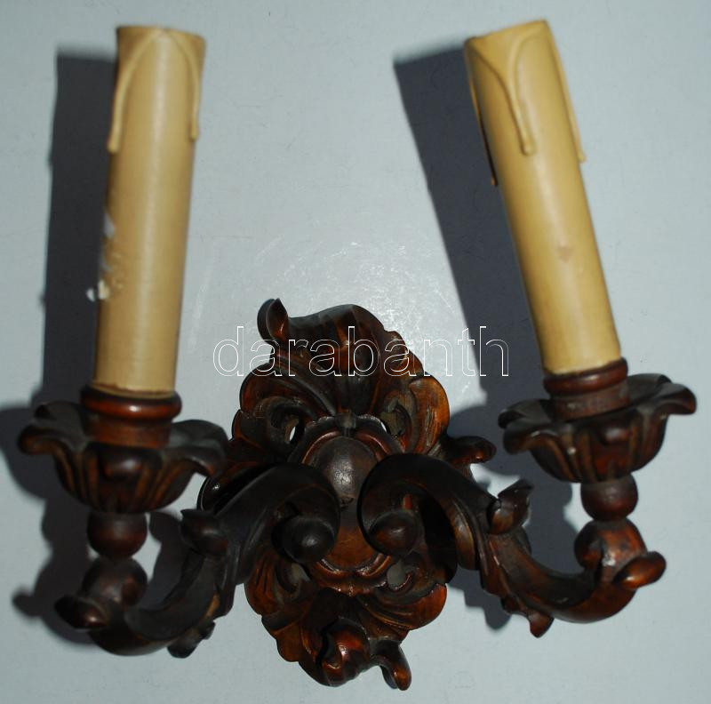 Leírás: 2db barokk stílusú faragott fa falikar burával, javításra szorul /
