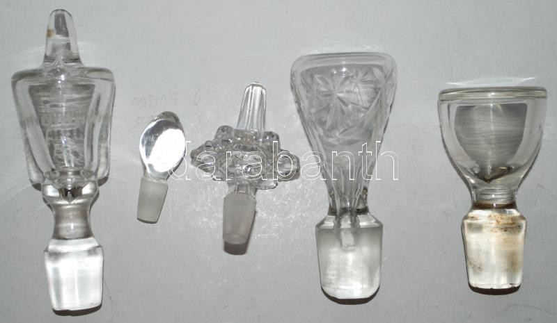 Leírás: 5db különböző méretű és formájú üvegdugó /