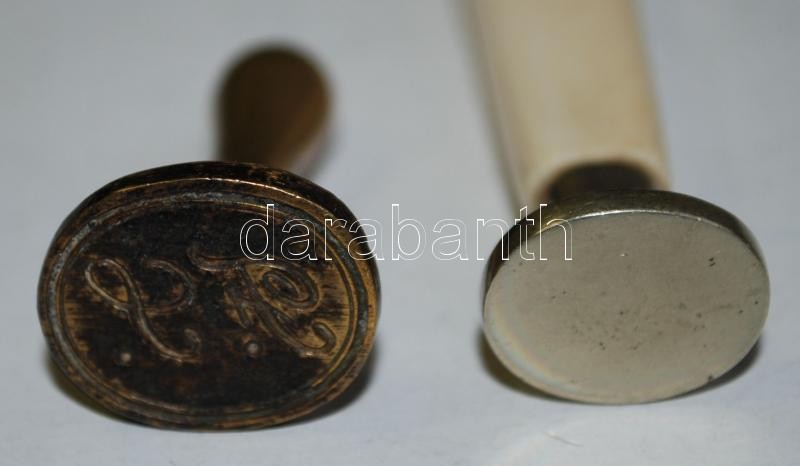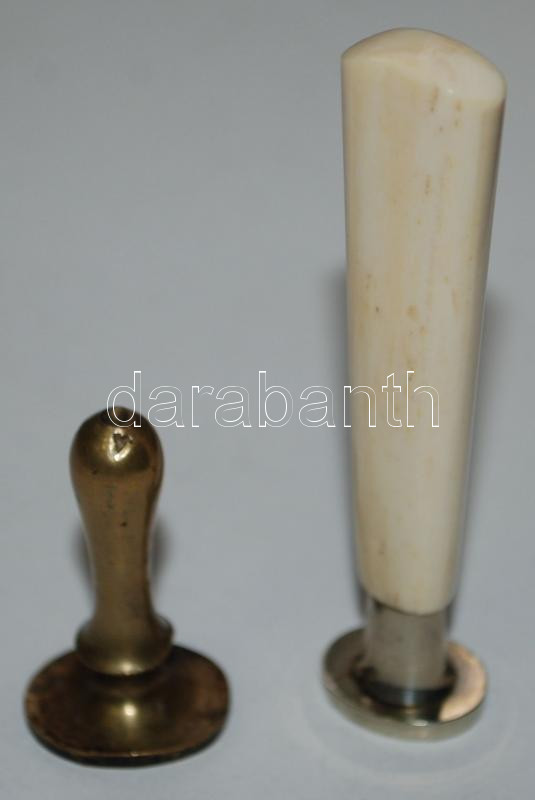 Stamps, 4cm, 7,5cm https://www.darabanth.com/hu/172-Gyorsarveres/172.0/Festmeny-mutargy-papirregiseg-egyeb/Bolhapiac~500001/Egy-rez-es-egy-csontnyelu-pecsetnyomo--3Cbr3EStamps-4cm-7-5cm~II581958