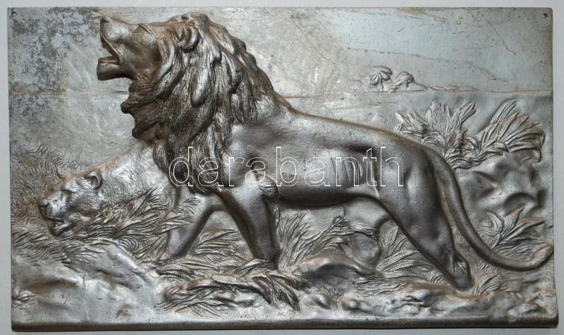 Leírás: Oroszlán pár, fém dombormű /