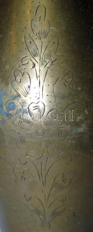 Leírás: Virágmotívumokkal díszített srapnelváza /