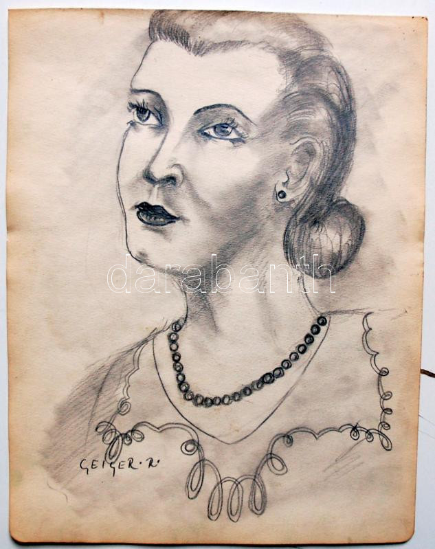 Geiger jelzéssel: Nő gyöngysorral, ceruza, papír, 28×21 cm https://www.darabanth.com/hu/172-Gyorsarveres/172.0/Festmeny-mutargy-papirregiseg-egyeb/Festmenyek-es-grafikak~500002/Geiger-jelzessel-No-gyongysorral-ceruza-papir-28C39721-cm~II586811