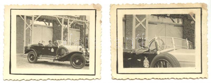 Leírás: cca 1930 Debreceni tűzoltótiszt kocsiján, 2db fotó, 5,5x7cm