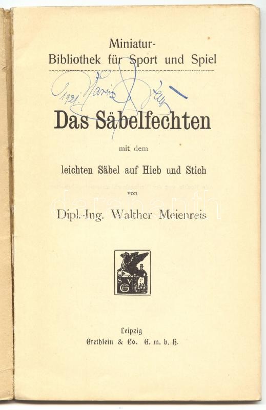 Walther Meienreis: Das Säbelfechten. Sport und Spiel MB 58. Leipzig. https://www.darabanth.com/hu/172-Gyorsarveres/172.0/Festmeny-mutargy-papirregiseg-egyeb/Konyvek-Idegen-nyelvu-konyvek~500034/Walther-Meienreis-Das-Sabelfechten-Sport-und-Spiel-MB-58-Leipzig~II583250