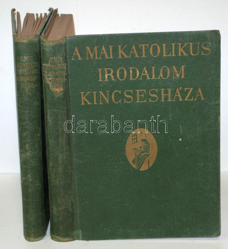 A mai katolikus irodalom kincsesháza I-II. kötet, Vigilia Antiqua Nyomdai és Irodalmi Rt. kiadása, kiadói egészvászon kötésben, a második kötet viseltes állapotban