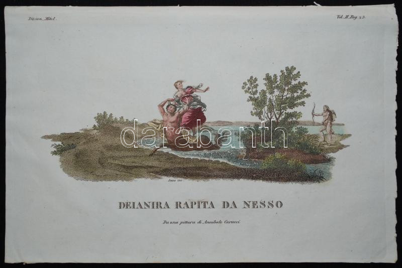 Delanira rapita da Nesso (Da una pittura di Annibale Caracci), színezett acélmetszet az 1809-1825 között Milánóban kiadott Dizionario d'ogni mitologica e antichita (vol. II) illusztrációi közül, 15x23cm