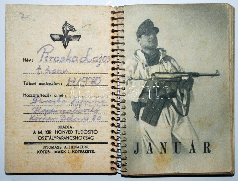 1944 Honvéd zsebnaptár, jó állapotban https://www.darabanth.com/hu/172-Gyorsarveres/172.0/Festmeny-mutargy-papirregiseg-egyeb/Militaria~500022/1944-Honved-zsebnaptar-jo-allapotban~II584881