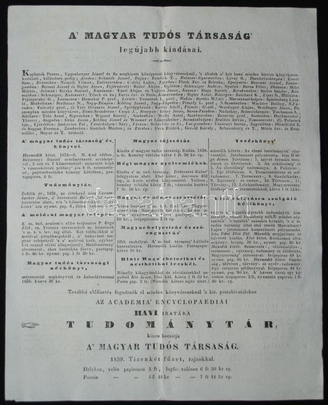 1838 A' Magyar Tudós Társaság legújabb kiadásai https://www.darabanth.com/hu/172-Gyorsarveres/172.0/Festmeny-mutargy-papirregiseg-egyeb/Nyomtatvanyok~500024/1838-A-Magyar-Tudos-Tarsasag-legujabb-kiadasai~II582049