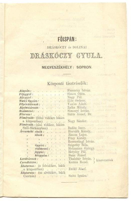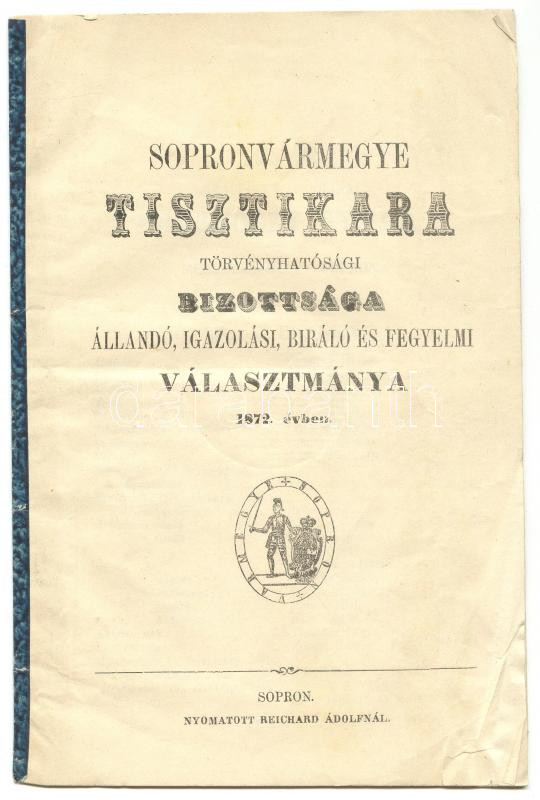 1873 Sopronvármegye tisztikara törvényhatósági állandó, igazolási bírá... https://www.darabanth.com/hu/172-Gyorsarveres/172.0/Festmeny-mutargy-papirregiseg-egyeb/Nyomtatvanyok~500024/1873-Sopronvarmegye-tisztikara-torvenyhatosagi-allando-igazolasi-biralo-es-fegyelmi-va~II585417
