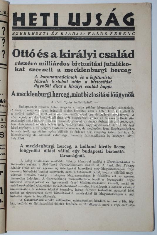 1926 Heti újság, bulvárlap sok érdekes írással, ragasztott https://www.darabanth.com/hu/172-Gyorsarveres/172.0/Festmeny-mutargy-papirregiseg-egyeb/Nyomtatvanyok~500024/1926-Heti-ujsag-bulvarlap-sok-erdekes-irassal-ragasztott~II584341