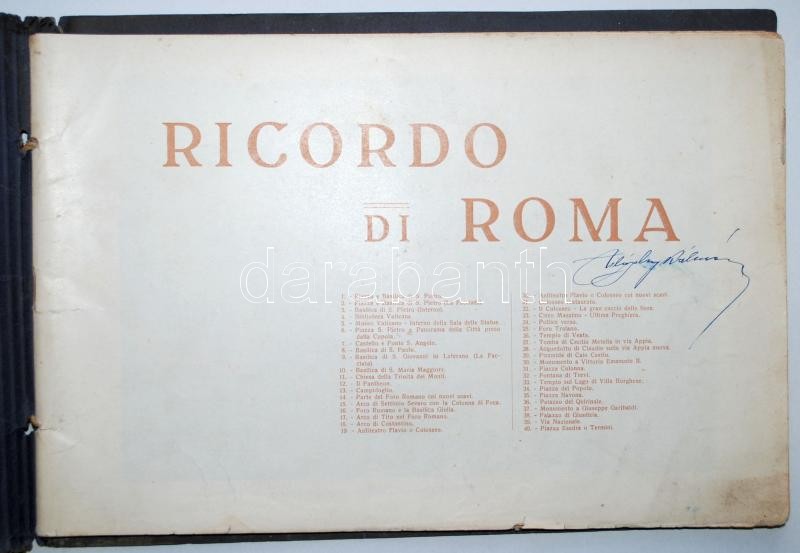 Leírás: cca 1900 Ricordo di Roma. Képesfüzet Rómáról fényképfelvételekkel /