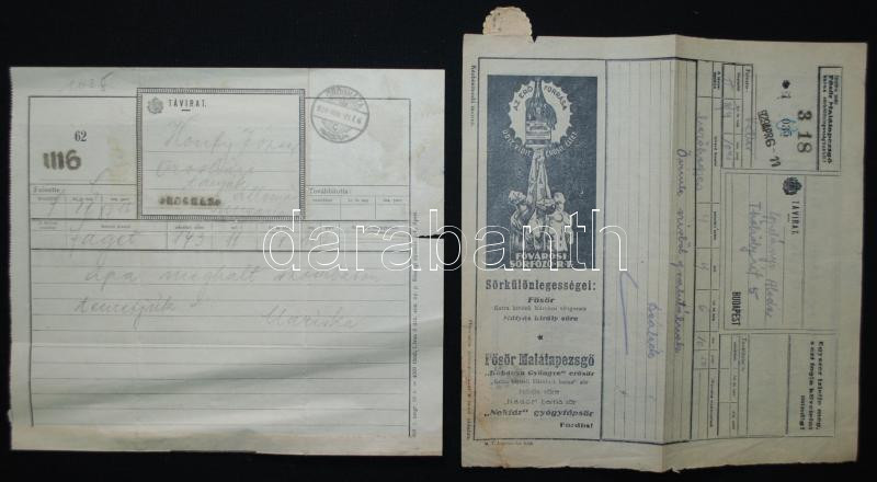 Leírás: 1930, 2 db távirat, egyiken sörreklám