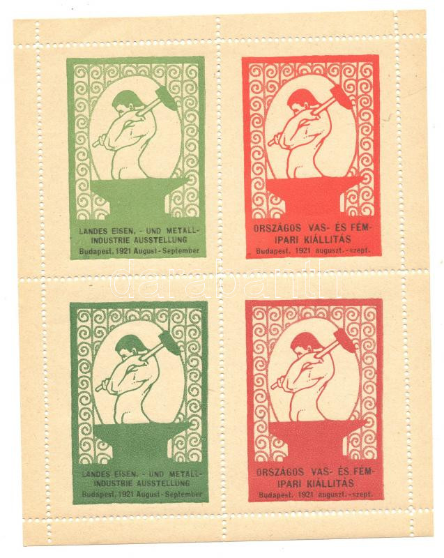 1921 Orsz Vas és Fémipari kiállítás négyestömb https://www.darabanth.com/hu/172-Gyorsarveres/172.0/Festmeny-mutargy-papirregiseg-egyeb/Parafilatelia~500013/1921-Orsz-Vas-es-Femipari-kiallitas-negyestomb~II584312