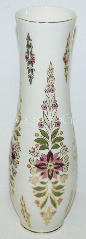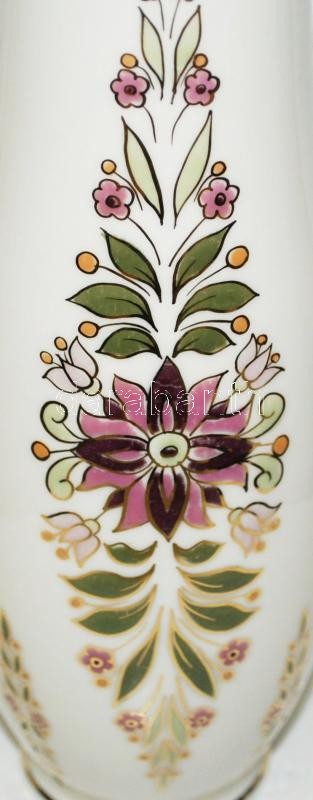 Kézzel festett virágokkal díszített nagyméretű Zsolnay porcelán váza, a festő "Csicskár M." jelzésével, hibátlan állapotban /