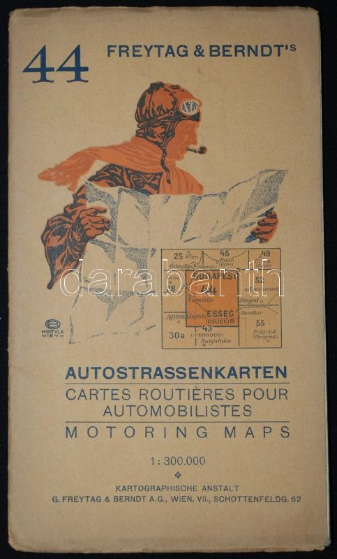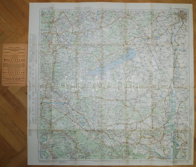 cca 1930 Budapest-Eszék autóstérkép a Balatonnal és környékével, Freytag und Berndt's (44), borítóval /