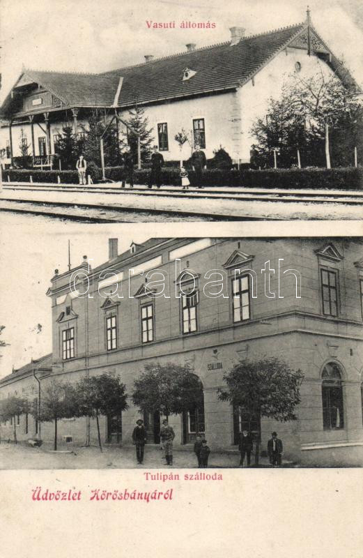 Kőrösbánya railway station, Hotel Tulipán https://www.darabanth.com/hu/172-Gyorsarveres/172.0/Kepeslapok/Erdely~5000006/Korosbanya-railway-station-Hotel-Tulipan~II586289