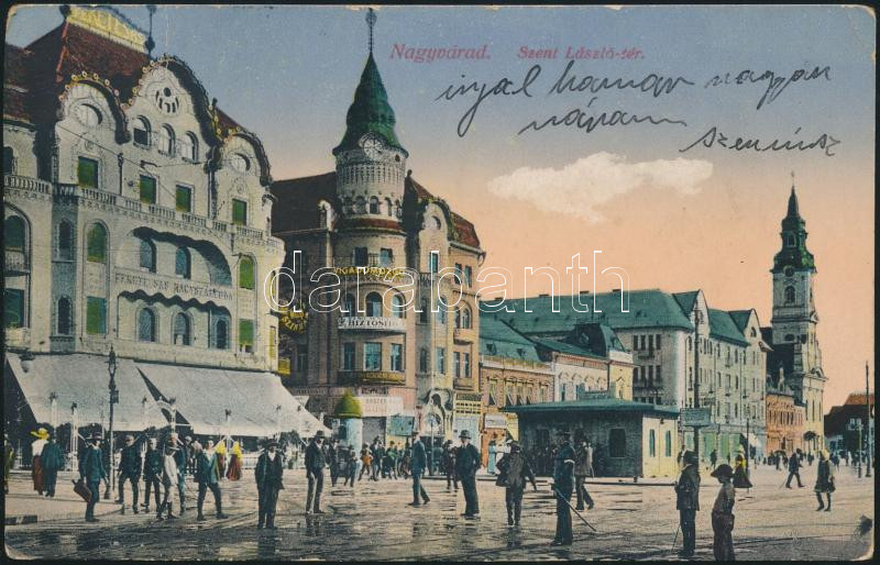 Leírás: Nagyvárad Szent László square, Hotel Fekete Sas, insurance (EB)