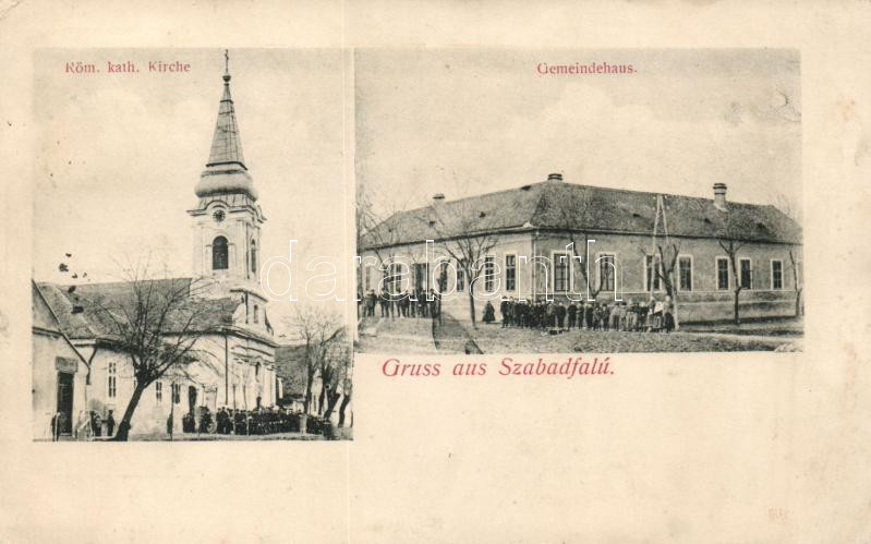Leírás: Szabadfalu Town Hall, Catholic church (EK)