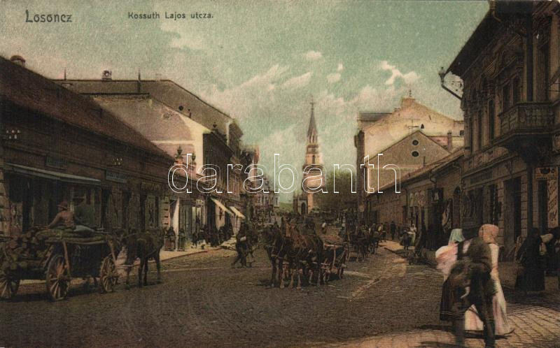 Losonc Kossuth Lajos street, shops https://www.darabanth.com/hu/172-Gyorsarveres/172.0/Kepeslapok/Felvidek~5000007/Losonc-Kossuth-Lajos-street-shops~II586374