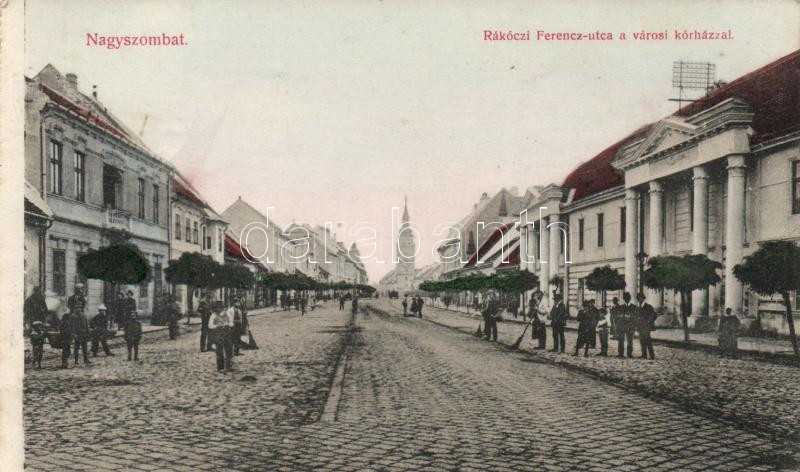 Nagyszombat Rákóczi street, hospital https://www.darabanth.com/hu/172-Gyorsarveres/172.0/Kepeslapok/Felvidek~5000007/Nagyszombat-Rakoczi-street-hospital~II586662