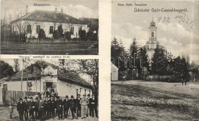 Győr-Csanakhegy Hangya, vendéglő és szatócsüzlet, Községháza https://www.darabanth.com/hu/172-Gyorsarveres/172.0/Kepeslapok/Magyarorszag~5000005/Gyor-Csanakhegy-Hangya-vendeglo-es-szatocsuzlet-Kozseghaza~II585194