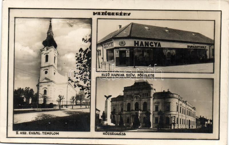 Mezőberény Hangya, Községháza, Evangélikus templom (EK) https://www.darabanth.com/hu/172-Gyorsarveres/172.0/Kepeslapok/Magyarorszag~5000005/Mezobereny-Hangya-Kozseghaza-Evangelikus-templom-EK~II584875
