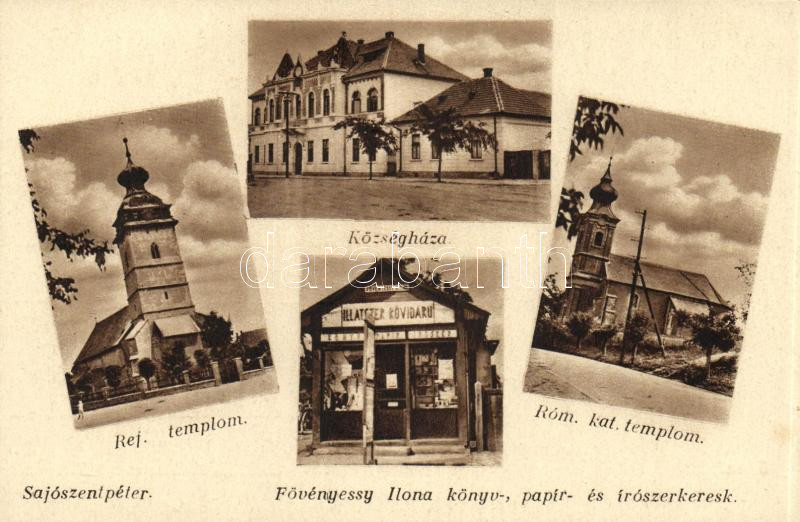 Leírás: Sajószentpéter Fövényessy Ilona könyv-, papír- és írószer kereskedése, Községháza