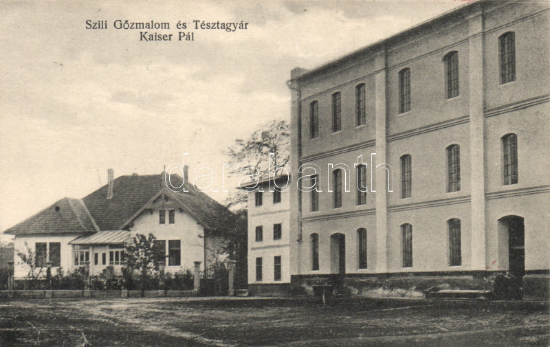 Szil Kaiser Pál gőzmalma és tésztagyára https://www.darabanth.com/hu/172-Gyorsarveres/172.0/Kepeslapok/Magyarorszag~5000005/Szil-Kaiser-Pal-gozmalma-es-tesztagyara~II572957