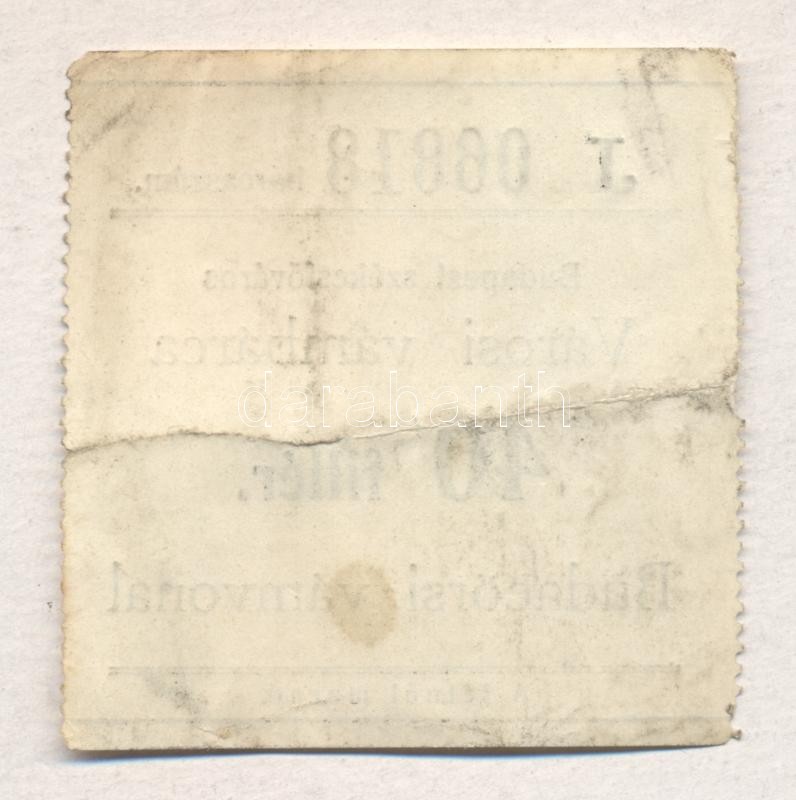 Budapest / Városi vámbárca 40f Budaeörsi vámvonalra T:II- (beszakadás) https://www.darabanth.com/hu/172-Gyorsarveres/172.0/Numizmatika/Magyar-es-kulfoldi-papir-es-fem-szuksegpenzek-penzhelyettesitok-~5000104/Budapest-Varosi-vambarca-40f-Budaeorsi-vamvonalra-TII-beszakadas~II587766