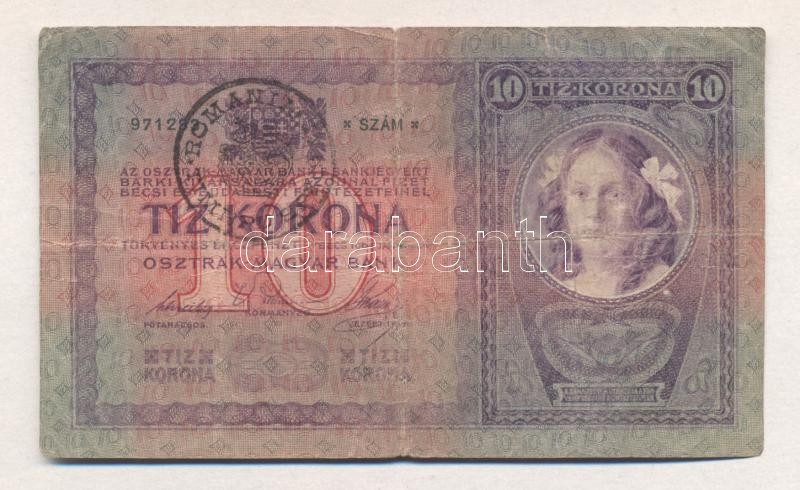 1904. 10K román körbélyegzővel T:IV https://www.darabanth.com/hu/172-Gyorsarveres/172.0/Numizmatika/Magyar-es-magyar-vonatkozasu-bankjegyek~5000105/1904-10K-roman-korbelyegzovel-TIV~II587834