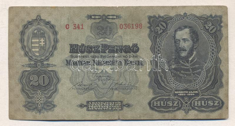 https://www.darabanth.com/hu/172-Gyorsarveres/172.0/Numizmatika/Magyar-es-magyar-vonatkozasu-bankjegyek~5000105/1930-20P-TIII~II587840