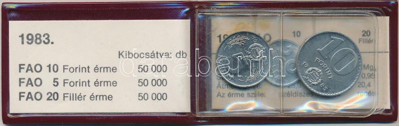 1983. "FAO" sor 20f, 5Ft, 10Ft eredeti plasztikcsomagolásban, tanúsítv... https://www.darabanth.com/hu/172-Gyorsarveres/172.0/Numizmatika/Magyar-fem-es-ezustpenzek~5000106/1983-FAO-sor-20f-5Ft-10Ft-eredeti-plasztikcsomagolasban-tanusitvannyal-TBU~II582126