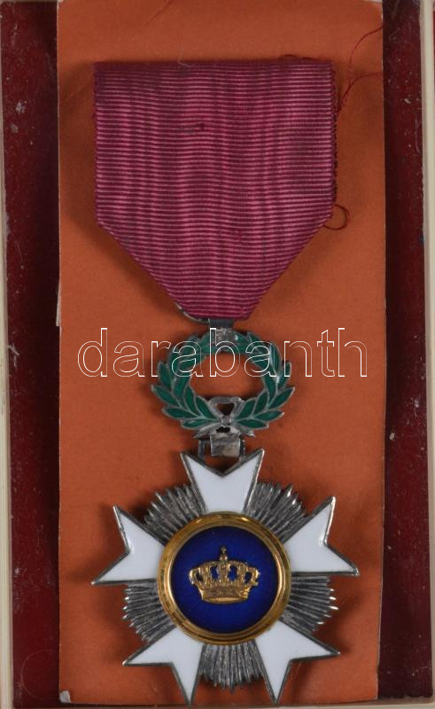Leírás: Belgium ~1900. "Korona Érdemrend Lovagkeresztje babérkoszorú díszítménnyel" zománcozott kitüntetés mellszalagon T:1-