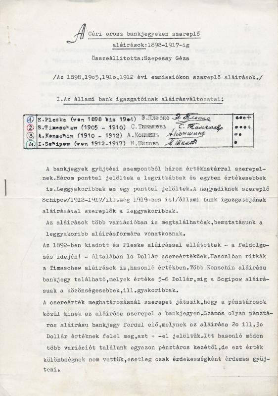 Leírás: 2db orosz bankjegyekről szóló szakirodalom, egyik Szepessy Géza összeállítása