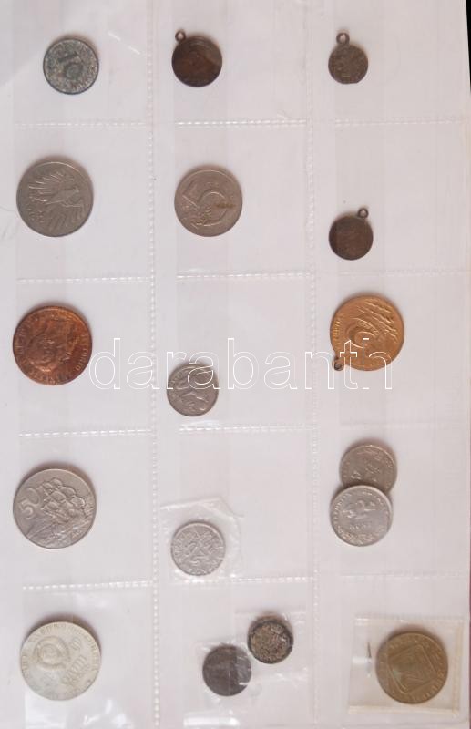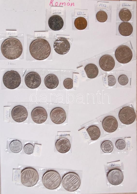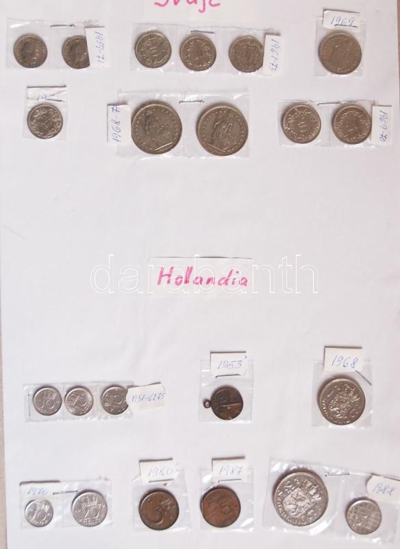 Vegyes világpénz gyűjtemény országonként külön kartonra rendezve, közte több ezüstpénz is Románia, Svájc, Olaszország stb., összesen több mint 600db fémpénz + néhány lengyel, román, horvát bankjegy T:vegyes